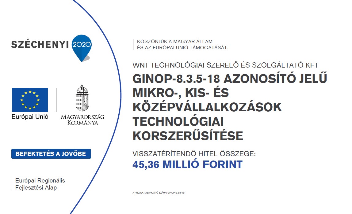 Projekt címe: Mikro-, kis- és középvállalkozások technológiai korszerűsítése a WNT Technológiai Szerelő és Szolgáltató Kft-nél