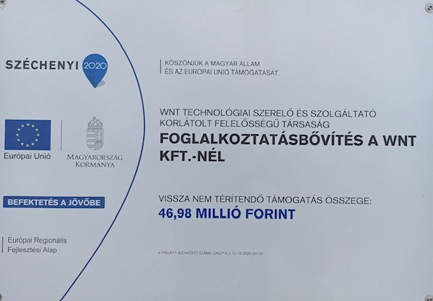 Kedvezményezett: WNT Technológiai Szerelő és Szolgáltató Kft.