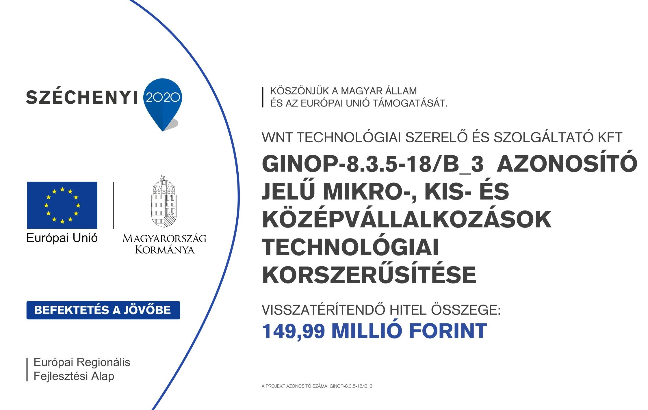 A WNT Technológiai Szerelő és Szolgáltató Kft. 2022. decemberében nyújtotta be pályázatát, „Mikro-, kis- és középvállalkozások technológiai korszerűsítése célú hitelprogram” című, GINOP-8.3.5-18/B_3 kódszámú pályázati felhívásra, mely pályázatot 149,99 millió Ft összegű technológiai korszerűsítése célú kölcsönre érdemesnek ítélték.